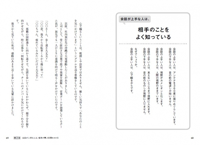 第4章「さりげなく心に響くことをする」と第5章「自ら心を開いて信頼される」では、人として魅力あふれる人の会話術についてお伝えしていきます。