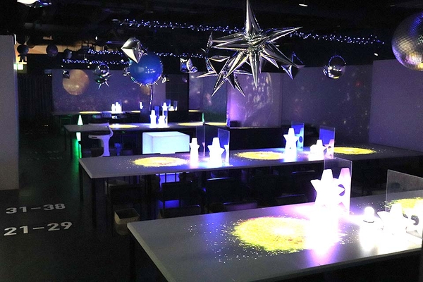 店内は、様々なアトラクション要素を取り入れており、360度プロジェクションマッピングによって、宇宙旅行気分を味わうことができます。