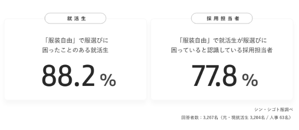 このことから、就活生が就活時の服装について悩んでいることを企業側が認識している現状が明らかとなりました。