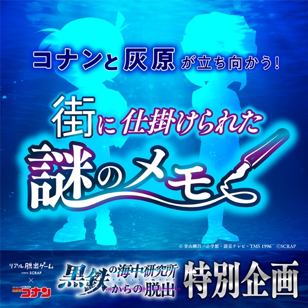 株式会社SCRAP(本社:東京都渋谷区 代表:加藤隆生)は、人気テレビアニメ「名探偵コナン」とコラボレーションしたリアル脱出ゲームの最新作『黒鉄の海中研究所(ラボラトリー・オルカ)からの脱出』の特別企画として、テレビアニメ「名探偵コナン」と連動し、誰でも挑戦できる無料の謎解き企画『コナンと灰原が立ち向かう! 街に仕掛けられた謎のメモ』を公開いたします。