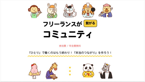 案件の交換だけでなく、人柄を知ったうえでつながれるフリーランス仲間を作ることを目的としたコミュニティとして、多くの出会い・つながりを生み出せるよう、引き続き参加メンバーを募集しています。