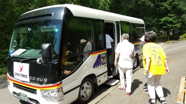 国道の通行止めが続いていた7月23〜31日(日曜を除く)、土石流被害にあった伊豆山地区・七尾団地から隣町の湯河原までを結ぶ無償の臨時バスを運行しました。ニーズ調査に基づき、買い物スポットや公民館など8カ所に停車する往復便を1日1便運行し、足の不自由な方や高齢の方などに利用されました。利用者からは「支給されている弁当は油物が多く、野菜を買いたかった」「バスの本数が減り買い物へ行きにくくなっていたから助かる」などの声が届いています。運行に当たってはニコーバスと協力しています。