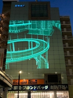縦横18mの巨大なビジョンに、石﨑本店が歩んできたこれまでの100年と未来が映し出されます。演出には、プロジェクションマッピングの手法を使い、トリックアート的な表現も随所に織り込みました。
