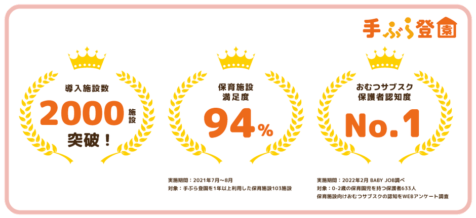 保護者は「紙おむつに名前を手書きして持参する」という手間が無くなり、保育士はおむつの個別管理の手間が無くなるという、保護者・保育士双方の課題を解決するサービスです。2019年7月にサービスを本格的に開始し、現在(2022年3月時点)は1,970施設以上で導入されています。2020年には、日本サブスクリプションビジネス大賞のグランプリを受賞しています。