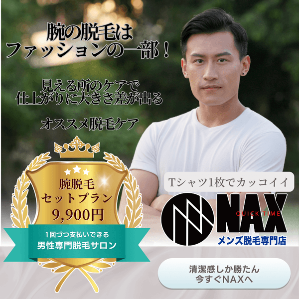 男性専門の脱毛サロンNAXでは、「腕脱毛はファッションの一部」と考えています。特に、肘上・肘下・手の甲・手の指を含む腕脱毛セットプラン(9900円税込)は、スタイリッシュな見た目を叶えるお得なプラン。なぜ今、腕脱毛が注目されているのか?そのメリットについて詳しく解説します。