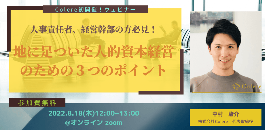 【8/18(木)無料ウェビナー】人事責任者、経営幹部の方必見!「地に足ついた人的資本経営のための3つのポイント」Colere初開催!