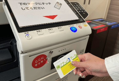 3. 店内に設置されたプリンターにICカードをタッチすることで、プリントを利用できます。(写真右)