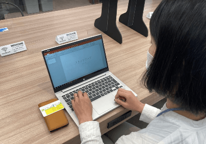 当社は店舗を通じて、ビジネスパーソンや創作活動を行う顧客にオンデマンドプリントサービスを提供していますが、駅から近い好立地の利点を活かし、働き方やニーズの変化に合わせたフリーWi-Fi・電源完備のワークデスクや個室型打合せルーム*の増設など、プリントサービス以外の目的でも利用できる環境づくりを進めています。