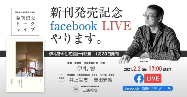 1月30日に新建新聞社より発行する、新刊 伊礼智の住宅設計作法Ⅲ「心地よさの ものさし」の出版記念Facebook Liveを2月2日(火)17時~開催します。