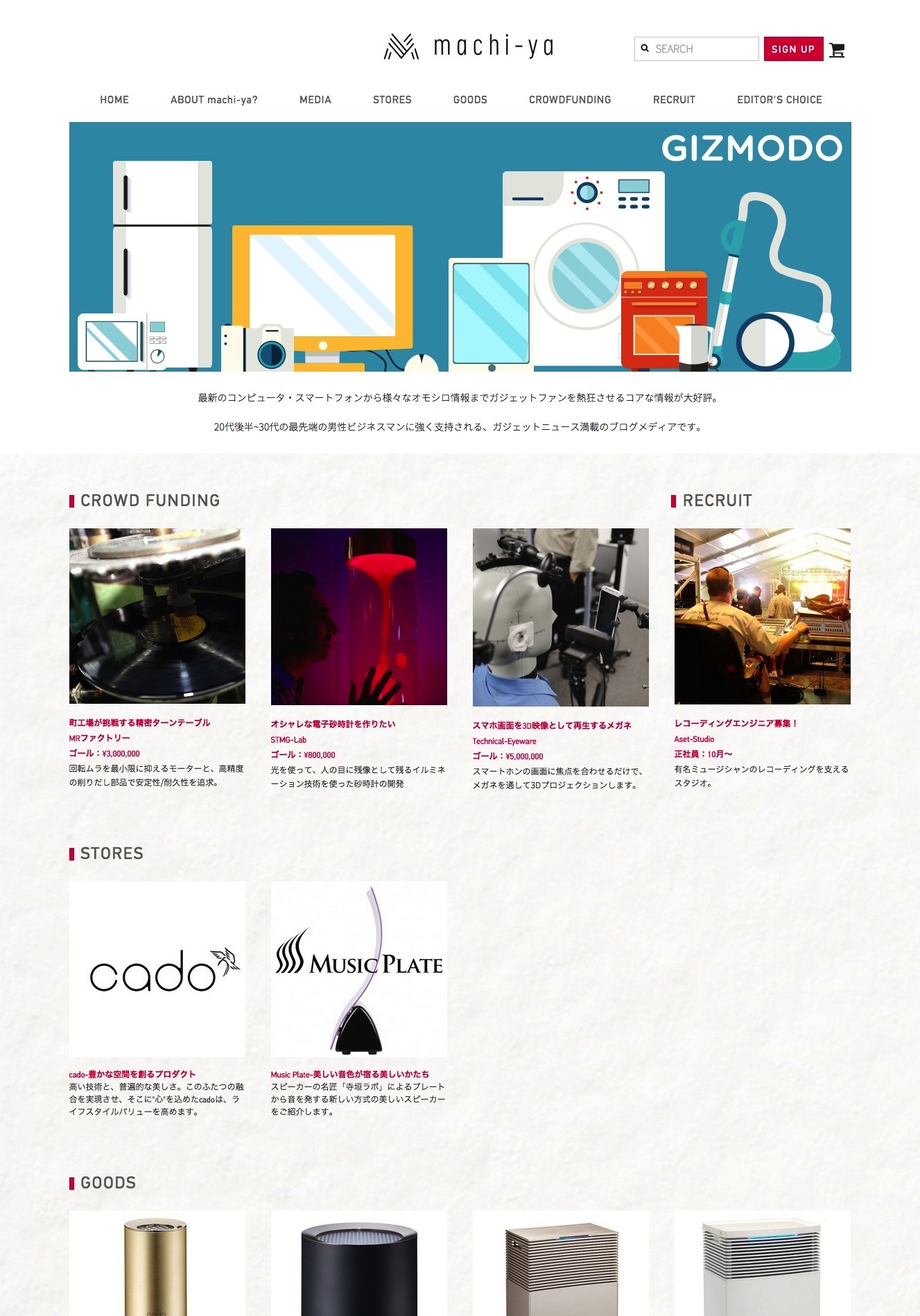 2015年6月18日 11:00オンラインショップ構築ASPサービスGoodsieを提供する株式会社新東通信(所在地:愛知県名古屋市/代表取締役:谷 鉄也)とギズモード・ジャパン、ライフハッカー[日本版]等を運営する株式会社メディアジーン(所在地:東京都渋谷区/代表取締役:今田 素子)は事業提携し、ギズモード等8メディアが立ち上げるEC・求人・クラウドファンディングを包括したマーケットプレイス「machi-ya」を共同事業として開始します。出店者は商品販売だけでなく、求人募集やクラウドファンディングで支援者を集めることも可能となります。「machi-ya」は、旧来型のオンラインモールとは異なる次世代メディアコマースの創出を目指します。