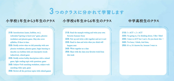 WAISが提供する【ESL教育の内容】は、一般的なESL教育と同様に、基本的な文法や語彙、日常会話を網羅しながら学習します。また、年齢を考慮しながら、3つの年齢層に分かれて、ゲームなども交えながら集中力を維持しながら英語の学習が楽しく感じられるように準備されています。