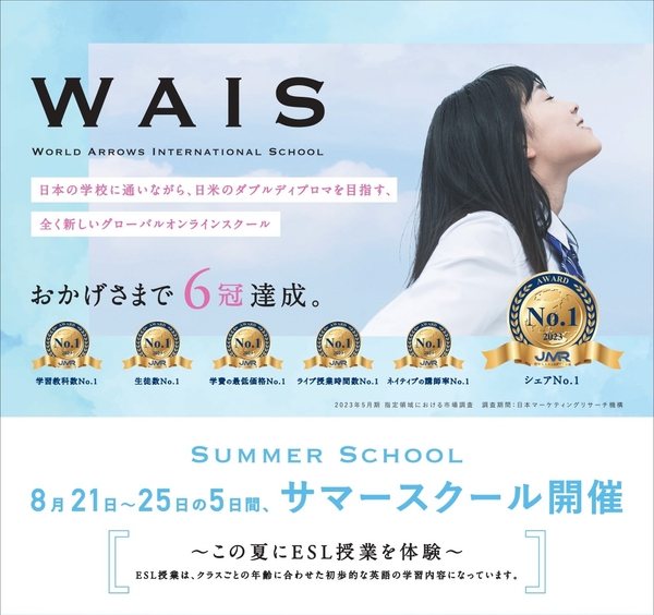 株式会社Mʼsインターナショナル(本社:東京都新宿区)は、日本の学校に通いながらダブルスクールできる完全オンライン型インターナショナルスクール「World Arrows International School(ワールド・アローズ・インターナショナルスクール)」(以下、WAIS)を設⽴。