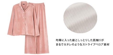 「Tuché」スイーツファブリックパジャマシリーズは、素材の特長をスイーツにまつわる言葉で表現した人気シリーズです。これまでに、しなやかな光沢感がある素材を用いた「バターサテン」、なめらかなモコモコ素材を用いた「ホイップニット」を発売しました。今秋新たにミルフィーユのようなやわらかくふんわりした肌ざわりの「ダンミルフィーユニット」、裏毛起毛でほどよく厚みがありソフトな肌ざわりの「ベイクドカラー裏毛起毛」、カヌレのようにしっとりした表面のストライプベロア素材を用いた「カヌレベロア」の3種類を発売しました。