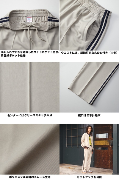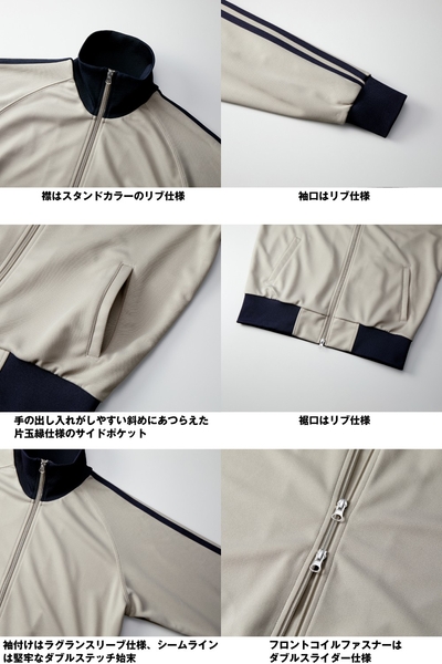 また、適度な光沢感とクラシカルなサイドライン、スポーティーなダブルスライダーなど、随所にこだわりを散りばめています。セットアップスタイルのコーディネートも魅力的な一着。日常からアクティブシーンまでオールマイティーに活躍するジャージで、さまざまなスタイリングを楽しんでいただけます。