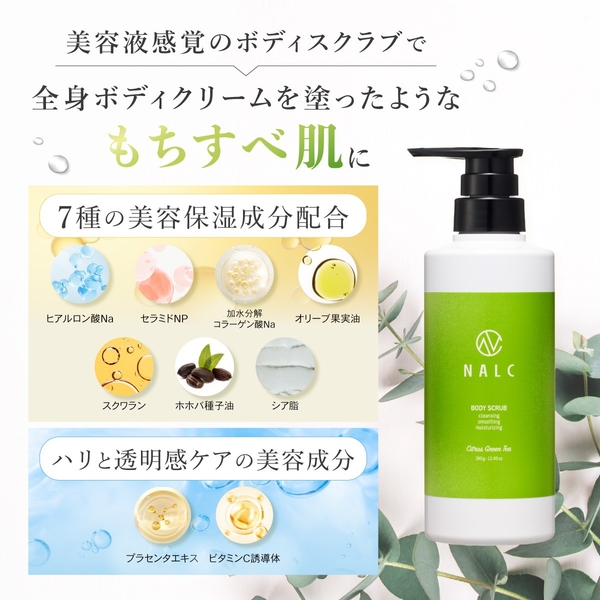 NALCは、これまでスクラブを諦めていた敏感肌の方にもお使えいただける優しさと、角質ケア後のつっぱり感を防ぐ潤いを両立。