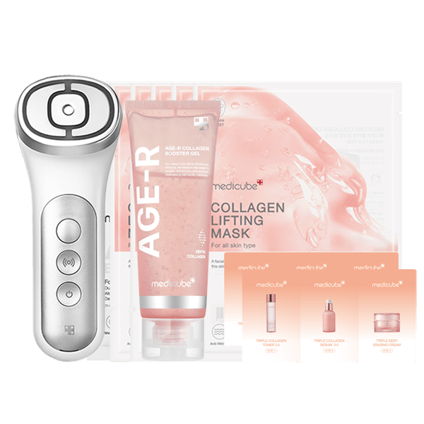「エージーアール(Age-R)」はメディキューブが開発した最初の美顔器です。中周波(EMS)を利用した小顔ケア美顔器で、気になる部分を引き締め、フェイスラインのケアを助けます。筋肉を動かし、普段使えていない表情筋などを運動させて顔の筋肉を鍛えることで、見た目年齢の引き下げ効果を導きます。