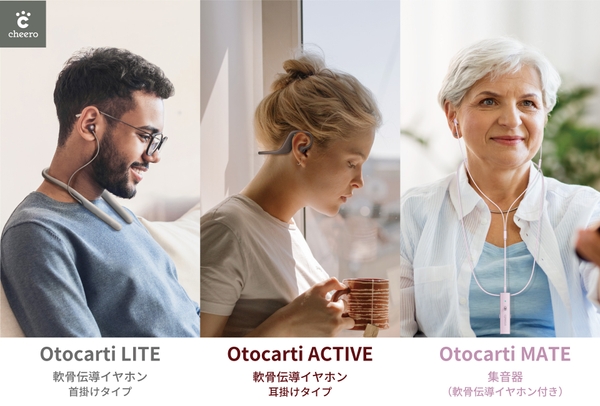 Otocartiは、Bluetoothイヤホンが2種類、集音器(軟骨伝導イヤホン付き)が1種類です。