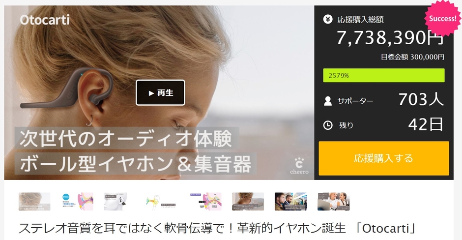 軟骨伝導イヤホン「cheero Otocarti(オトカルティ)」 Makuakeにて目標金額2500%達成!!