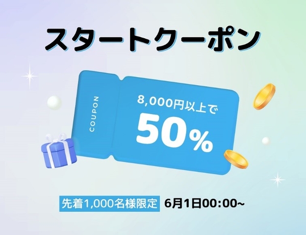 ① 6月1日 00:00~ / 先着順1,000枚限定 / 8,000円以上50%OFF