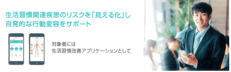 「健康支援サービス(MIRAMED)」は、東京大学COI(※2)が開発した行動変容促進システムを活用した特定保健指導支援システム/生活習慣改善アプリケーションサービスです。AIを活用して将来の生活習慣関連疾患のリスクを「見える化」することで、カラダの状態を自分事化し、自発的な動機付けを促す各種機能により対象者の行動変容と健康増進をサポートします。特定保健指導の対象者と管理者・指導担当者のそれぞれが利用できる2in1のサービスです。「健康支援サービス(MIRAMED)」が行動変容のパートナーとして、対象者の毎日に寄り添うことで、対象者の脱落を防ぐほか、遠隔面談やチャットといった機能により非接触かつ対象者の生活のペースを尊重した特定保健指導を実現します。