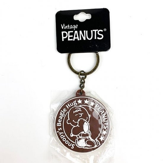 スヌーピーとチャーリーブラウンのハグデザインがかわいい、キーホルダーです。シックなブラウンのアイテムで、大人カワイイ雰囲気ですよね。