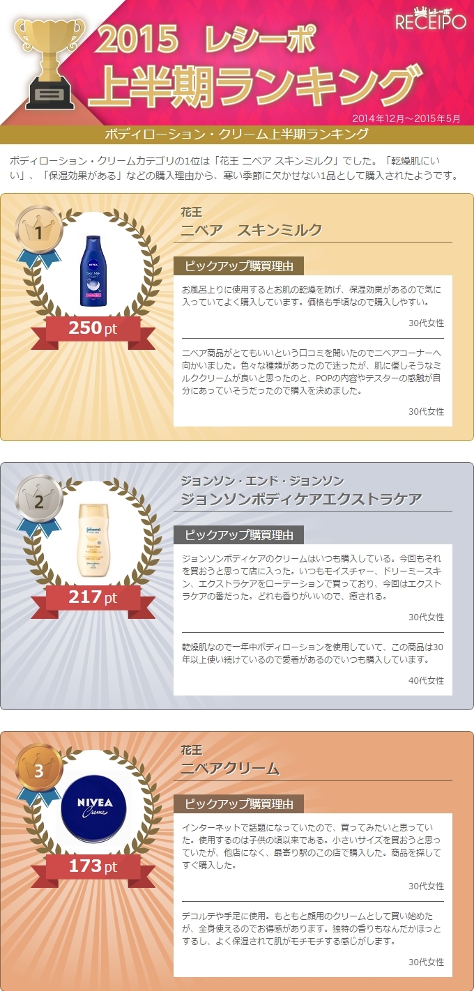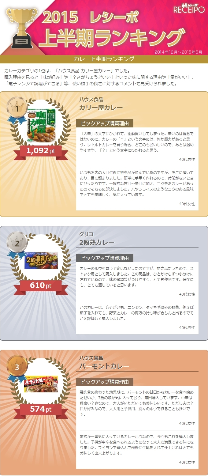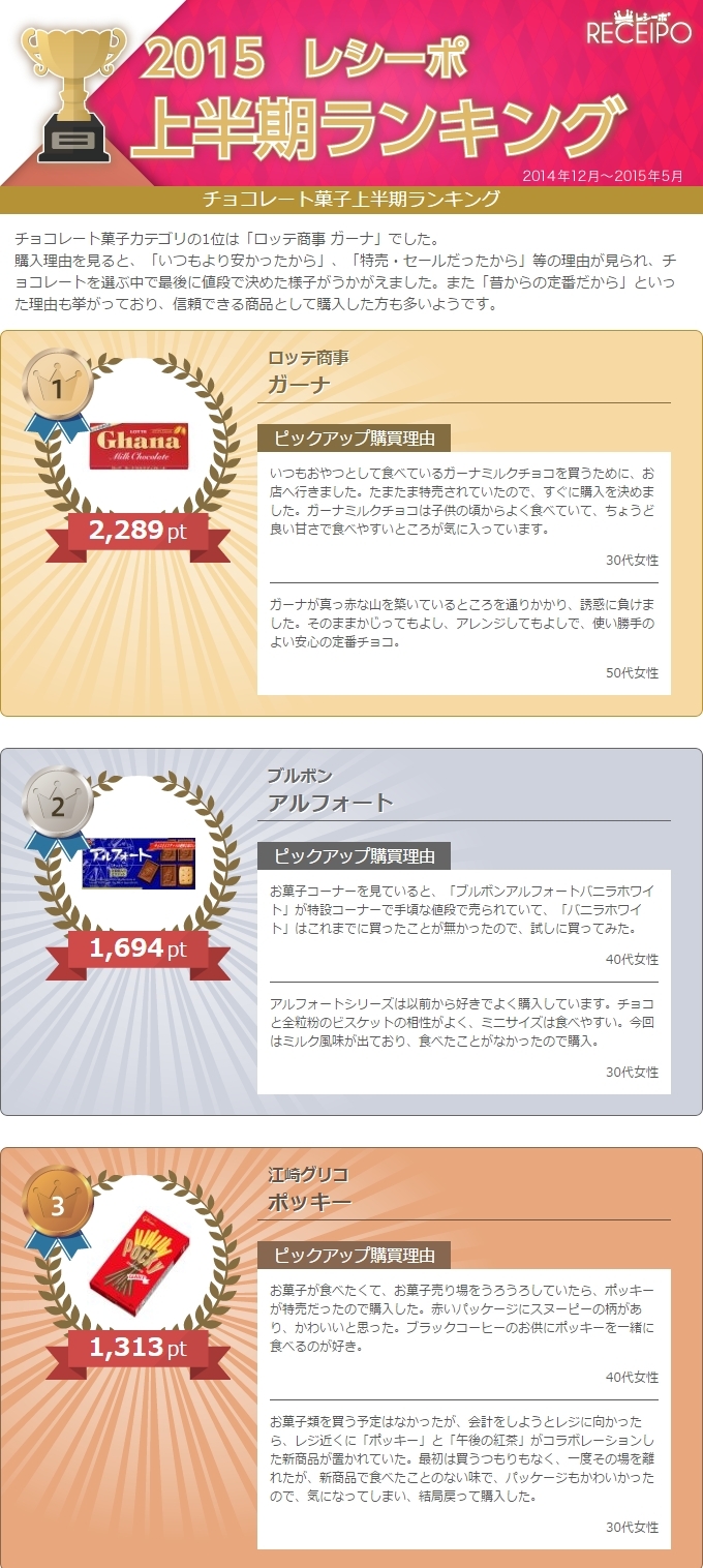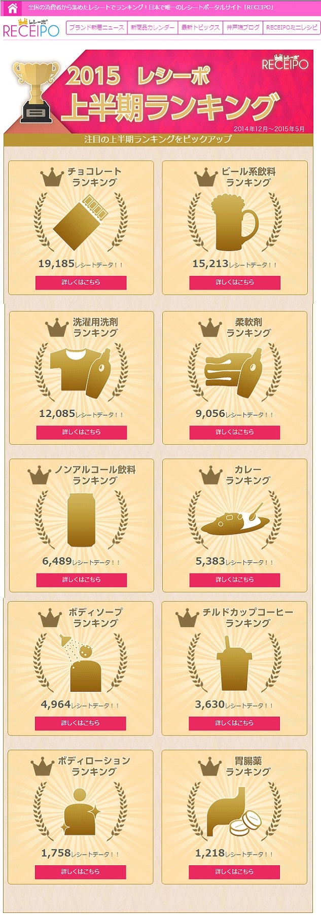 詳細は「2015 レシーポ上半期ランキング特設ページ」にて、各カテゴリのランキング及び、上位ブランドの購入理由を掲載していますので、ご参照ください。