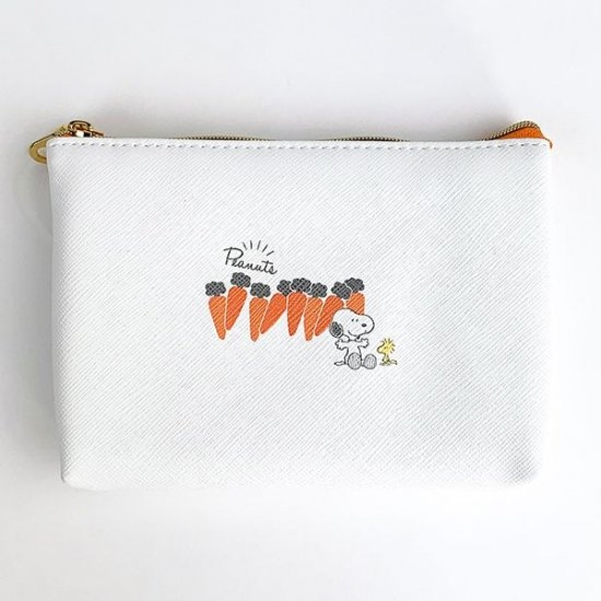 ホワイトカラーにニンジンのデザインがキュートな、3ポケットポーチです。スヌーピーとウッドストックが仲良さそうな姿もデザインされていて、キュートですね♡ホワイト×オレンジの配色は個人的にも好きなので、オススメしたい一品です。