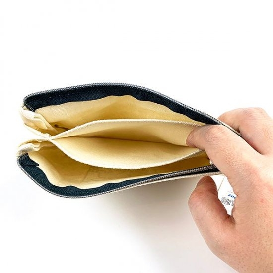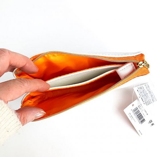 ファスナー部分のオレンジも効いています♪3つもポケットがあるのに意外に厚みがないので、バッグの中でもかさばらないのは嬉しいですよね。