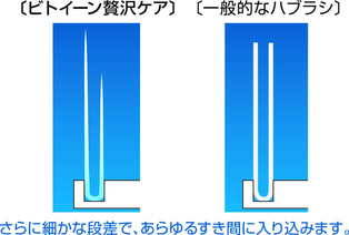 ブラシの毛1本1本に小さな段差をつけることで、あらゆる歯のすき間に毛先が入り込みます。