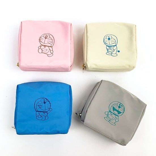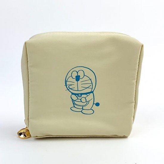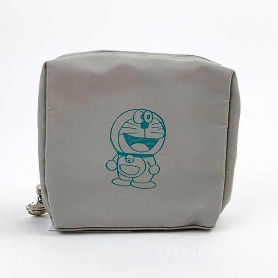 マットな質感が大人っぽさを引き立ててくれるポーチ☆中央にはシンプルなドラえもんイラスト。無駄を省いた可愛さがあります!サイズは13×13×6cm。