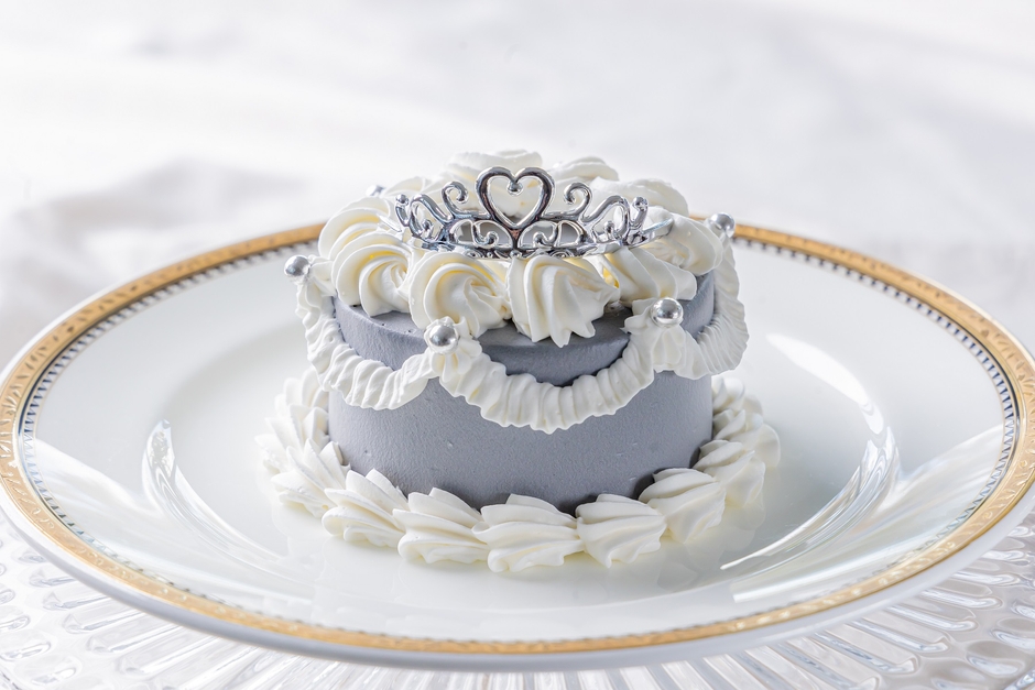 アシェットデセールにはマリーアントワネットをイメージしたプリンセスドレスケーキ、三段スタンドにはプリンセスティアラ付きの苺モンブランや色鮮やかな桜と苺のジュレ、苺とピスタチオのクッキーサンドなどのプチガトーをご用意しています。また、推し活女子にも嬉しい、5色のクラウンケーキもオプションでお楽しみいただけます。