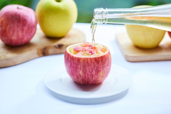 清涼感がありながら複雑味が強いシードルに王林合わせることで、王林の爽やかな風味が口いっぱいに
