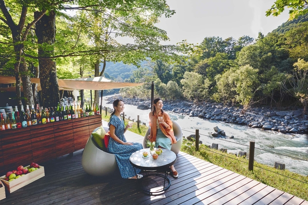 十和田八幡平(とわだはちまんたい)国立公園を流れる奥入瀬渓流のほとりに建つ当ホテルは、苔をはじめとする多様性のある美しい自然に囲まれ、その自然を満喫できる食事、温泉、アクティビティを提案しています。奥入瀬渓流が位置する青森県は、日本一のりんご生産量(*1)を誇り、りんごを使ったお酒「シードル」もりんごの楽しみ方の一つです。そこで、夏の過ごし方として「シードル」に着目し、奥入瀬渓流沿いで夏をさわやかに過ごしてほしいと考え、渓流沿いできりっと冷えたシードルを楽しめるイベントを2020年から実施してきました。せせらぎが聞こえる渓流沿いの開放的な空間で、当ホテルのソムリエが厳選した30種類のシードルを一度に楽しみ、さわやかな夏を過ごせます。