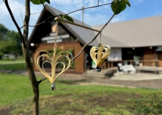 ハート形モビールを那須塩原ブランド「経木」のキットで作るワークショップ。手ぶらで参加でき、夏休みの宿題にも最適です。