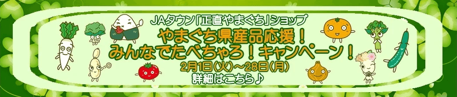 JA全農は、産地直送通販サイト「JAタウン」に出店する「正直やまぐち」で、「やまぐち県産品応援!みんなでたべちゃろ!キャンペーン!」を実施中です。