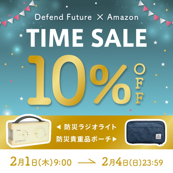 シリーズ累計販売個数200,000個突破※、日本発、防災グッズブランド「Defend Future(ディフェンドフューチャー)」(株式会社G.Oホールディングス:大阪府大阪市)は、2月1日〜2月4日の期間中【Amazonタイムセール祭り】にて人気防災グッズを《10%OFF》で販売いたします。