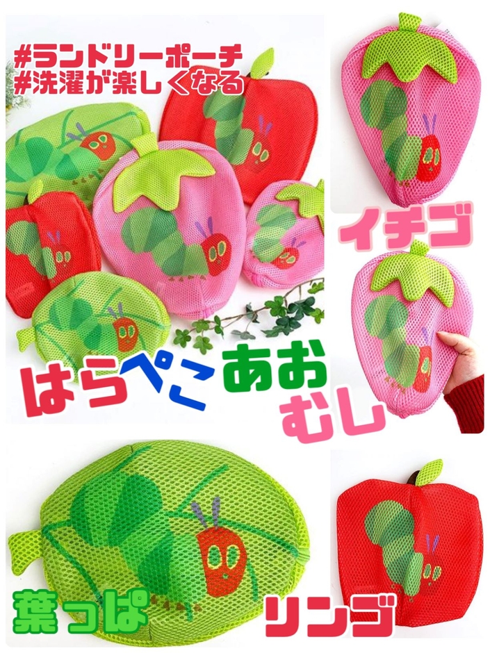 毎日のお洗濯をもっと楽しく♪はらぺこあおむしのランドリーポーチはイチゴに葉っぱにリンゴ!正直私も欲しい。。。