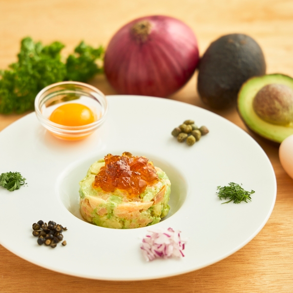 「サーモンアボカドタルタル 930円(税込1,023円)」は、お皿に添えてある生タイプの粒コショウ、ケーパー、ディル、レッドオニオン、イタリアンパセリ、卵黄をお好みで加え、食べる直前に全体が均一になるように混ぜてからいただくお料理。最強タッグの“サーモン”と“アボカド”が、相性抜群の一品です。