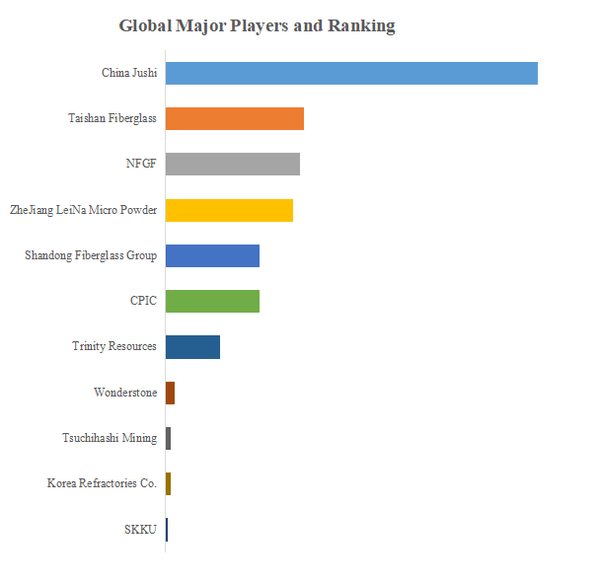 YHResearchのトップ企業研究センターによると、葉ろう石の世界的な主要製造業者には、China Jushi、Taishan Fiberglass、NFGF、ZheJiang LeiNa Micro Powder、Shandong Fiberglass Group、CPIC、Trinity Resources、Wonderstone、Tsuchihashi Mining、Korea Refractories Co.などが含まれている。2023年、世界のトップ5企業は売上の観点から約41.0%の市場シェアを持っていた。