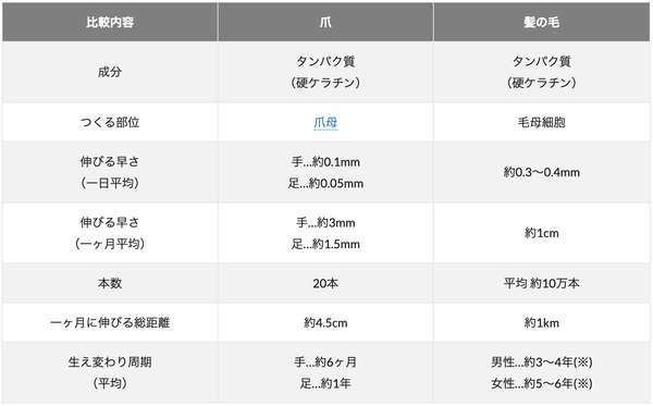 そんな方も多いと思いますが、爪と髪を比較して、爪の特徴を知りましょう。