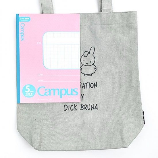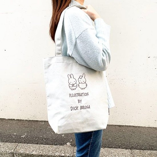ミッフィーと、たれたお耳がかわいいダーンがデザインされた刺繍トート。どんなコーデとも相性の良いグレーのお色。「ILLUSTRATION By DICK BRUNA」のキュートなネームタグもかわいいポイントです。