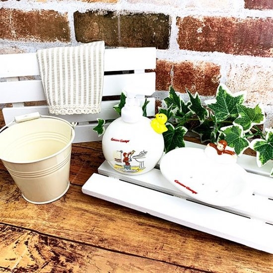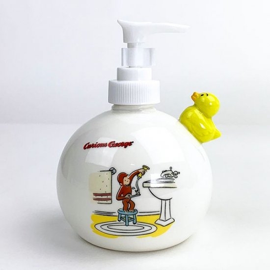 おさるのジョージのイラストの、ソープディスペンサーも登場しました。丸いフォルムもかわいくて、イラストもジョージが洗面所で歯磨きをするシーン♪まさに洗面所にピッタリなイラストですよね。