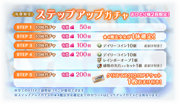 有償限定 ステップアップガチャ クリスマス魔法少女2021編