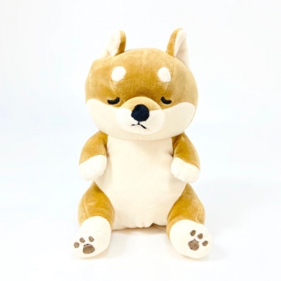 お座りポーズで気持ちよさそうに眠っている、キツネのこんた。見ているだけで癒されますが、触るとさらに癒し度アップ♪
