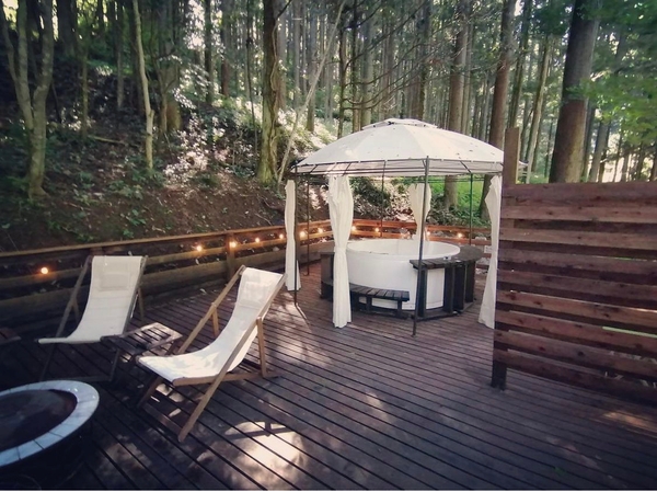 広いウッドデッキにおしゃれなテント。秋川渓谷の大自然の中、BBQや焚き火などが楽しめる『FUREAI GLAMPING&BBQ』