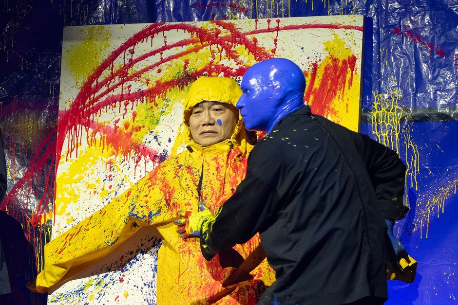 90分があっという間。びっくりするほど短く感じました。僕も舞台上に上がって、ライブペインティングをされました(笑)。ブルーマンたちが友好的なのか、敵対心があるのか、どこまでイジって来るのか……。どんな目に遭うのかわからず、怖かった。おもろ怖いというのですかね。ドキドキ感がありました。