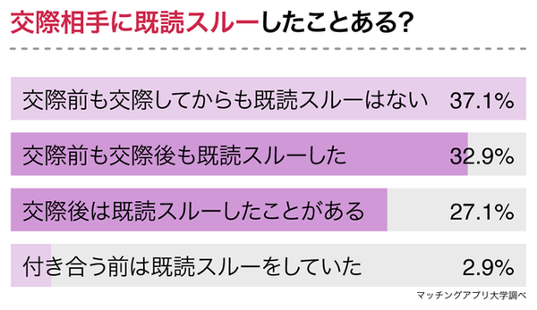交際前よりも交際後に「既読スルー」が増える傾向