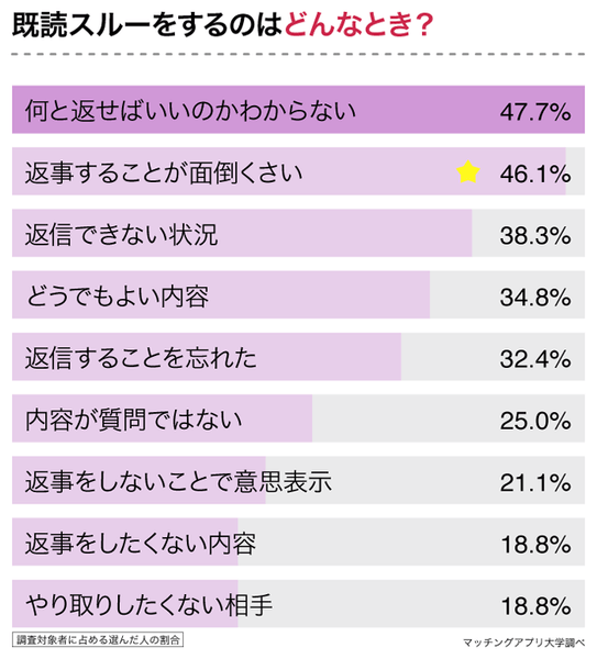 既読無視する理由は「何と返せばいいのかわからない」が多数