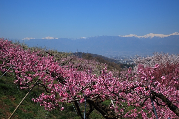 桜が散り始めるころ、山梨には桃の花が咲き誇ります。