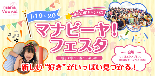 注目の講師陣、人気のワークショップが集結! 親子で楽しみ、学べる「マナビーヤ!フェスタ」 7月19日、20日 千葉・柏の葉にて開催